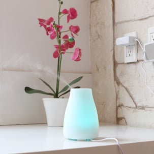 Lámpara led con difusor para aceites esenciales, 7 cambios de luz con brillo ajustable, la lámpara y el difusor pueden utilizarse por separado, carga a través de adaptador de corriente.