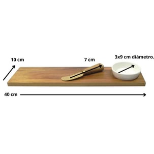 Tamaño Individual Tabla: 40 x 10 cm. Bowl: 3x9 cm diámetro. Cuchillo: 7 cm